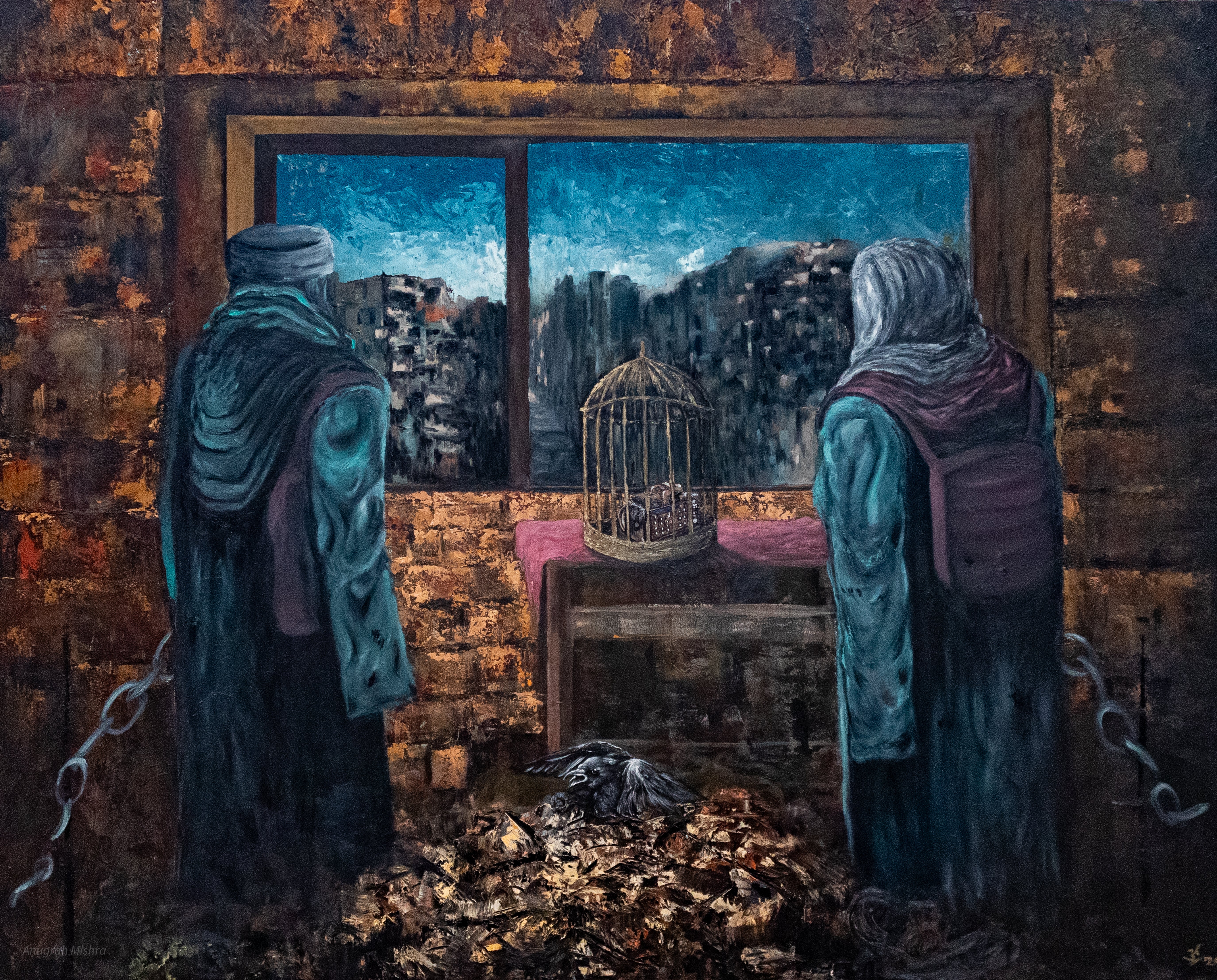 The artworks presented here reflect a serious engagement with contemporary themes, employing various styles and techniques that challenge conventional perceptions of art. Each piece is a testament to Anugrah's commitment to exploring complex ideas and emotions, inviting viewers to engage with the underlying narratives and symbolism embedded within the compositions.
